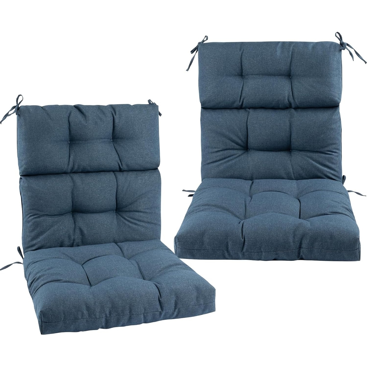 Reversible Outdoor High Back Chair Cushions Set of 2, Water Resistant 44x22 Inch, Tufted Design for Patio Furniture (Denim Blue)