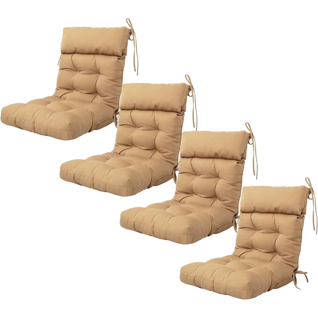 Set of 4 Waterproof Outdoor Chair Cushions with Ties, 19x19x3 Inch Thick Patio Seat Cushions for Dining Chairs