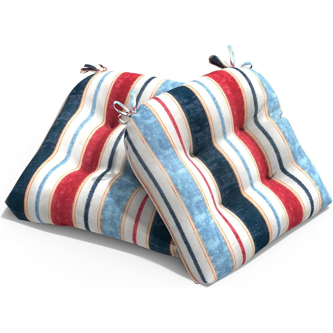 All Weather U-Shaped Tufted Outdoor Chair Cushions, Pack of 2, 19x19x4 Inch, Stripe Red Blue