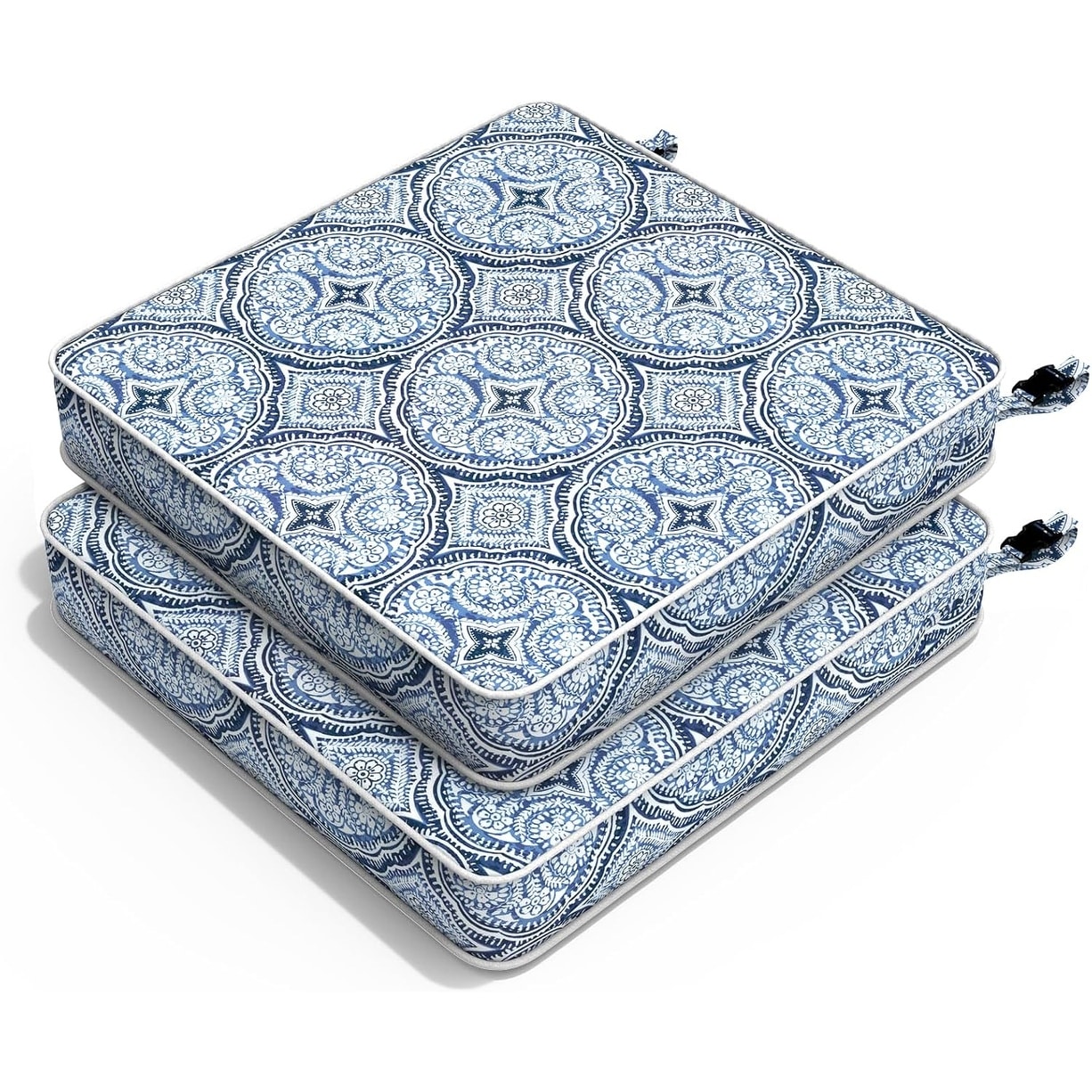 22x22x3 Inch Water Repellent Outdoor Chair Cushions with Adjustable Straps, Set of 2
