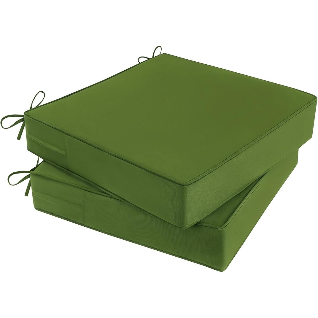 Set of 2 Waterproof Outdoor Chair Cushions 19x19x4 Inch with Elastic Straps and Handle, Green