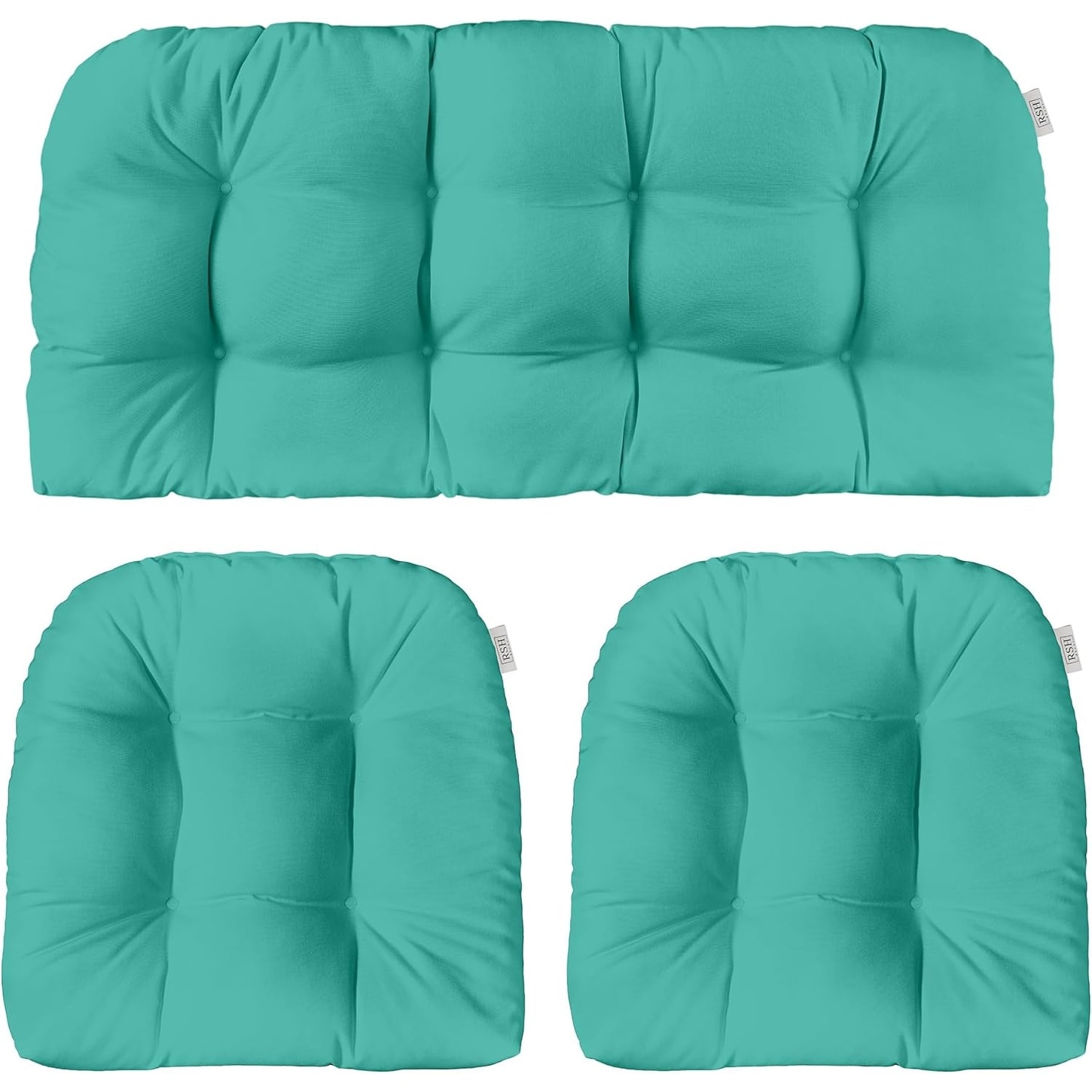 3-Piece Wicker Tufted Cushion Set with Sunbrella Fabric, Loveseat & U-Shaped Seat Cushions, Canvas Aruba