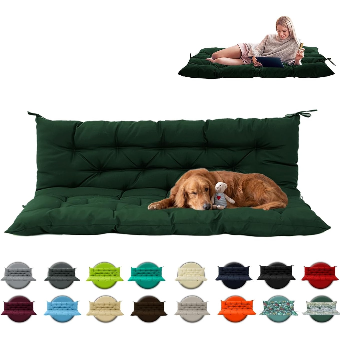 Waterproof 3-Seat Porch Swing Cushion with Backrest - Thick 4'' Outdoor Bench Cushion in Dark Green (40x47in)