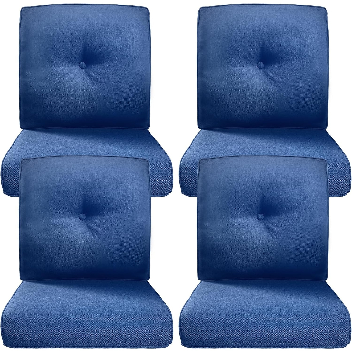 4 Inch Thick Outdoor Cushion Set - 22x24 Inch, Fade-Resistant, Spill Proof, Removable Patio Furniture Cushions - Blue