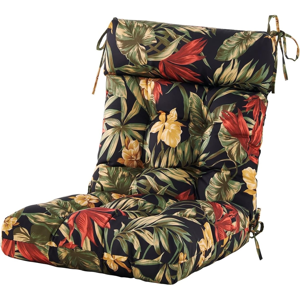 High Back Tufted Outdoor Chair Cushion with Ties, Water Resistant, Floral Design, 44x21x4 Inch