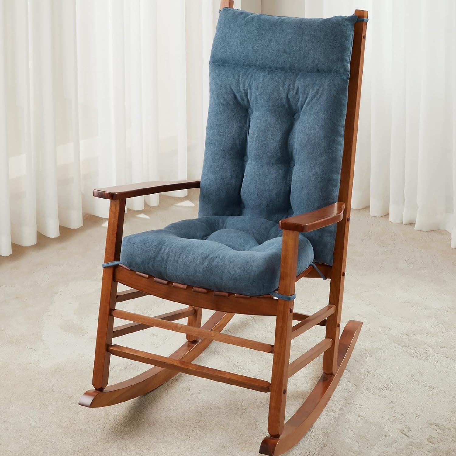 Comfortable Outdoor & Indoor Rocking Chair Cushion Set with Anti-Slip Design and Ergonomic Headrest