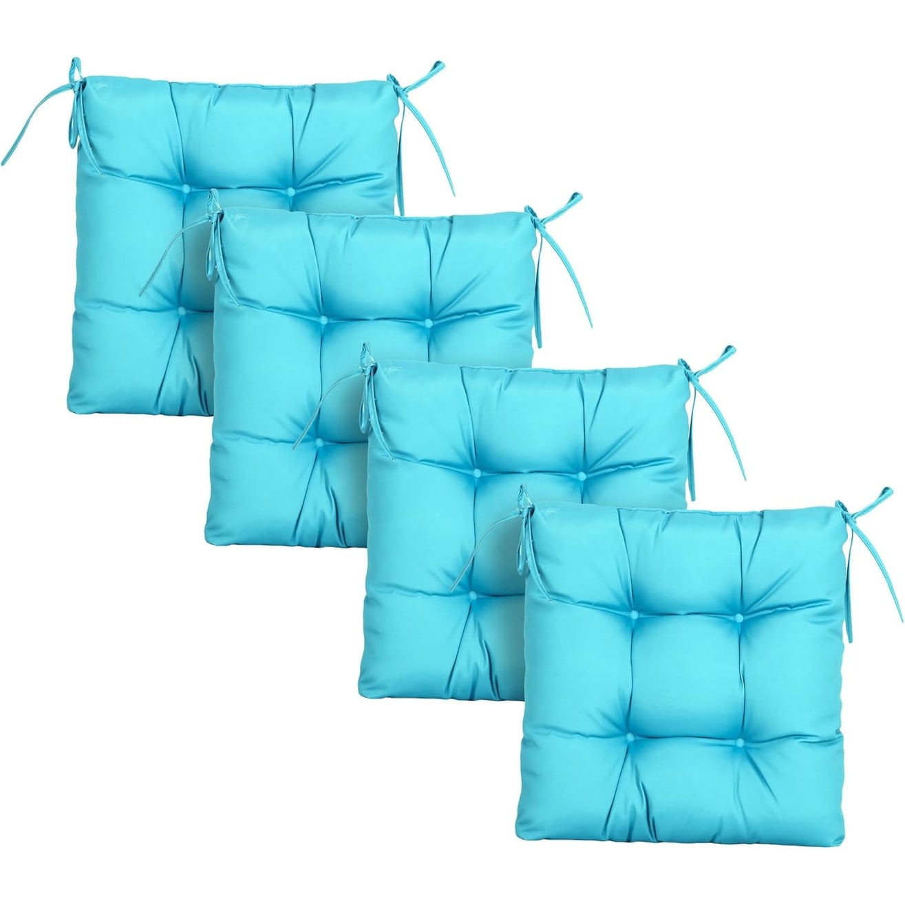 Set of 4 Sky Blue Outdoor Chair Cushions, 19x19x4 Inches, Water Resistant, UV Treated, with Ties for Patio Furniture