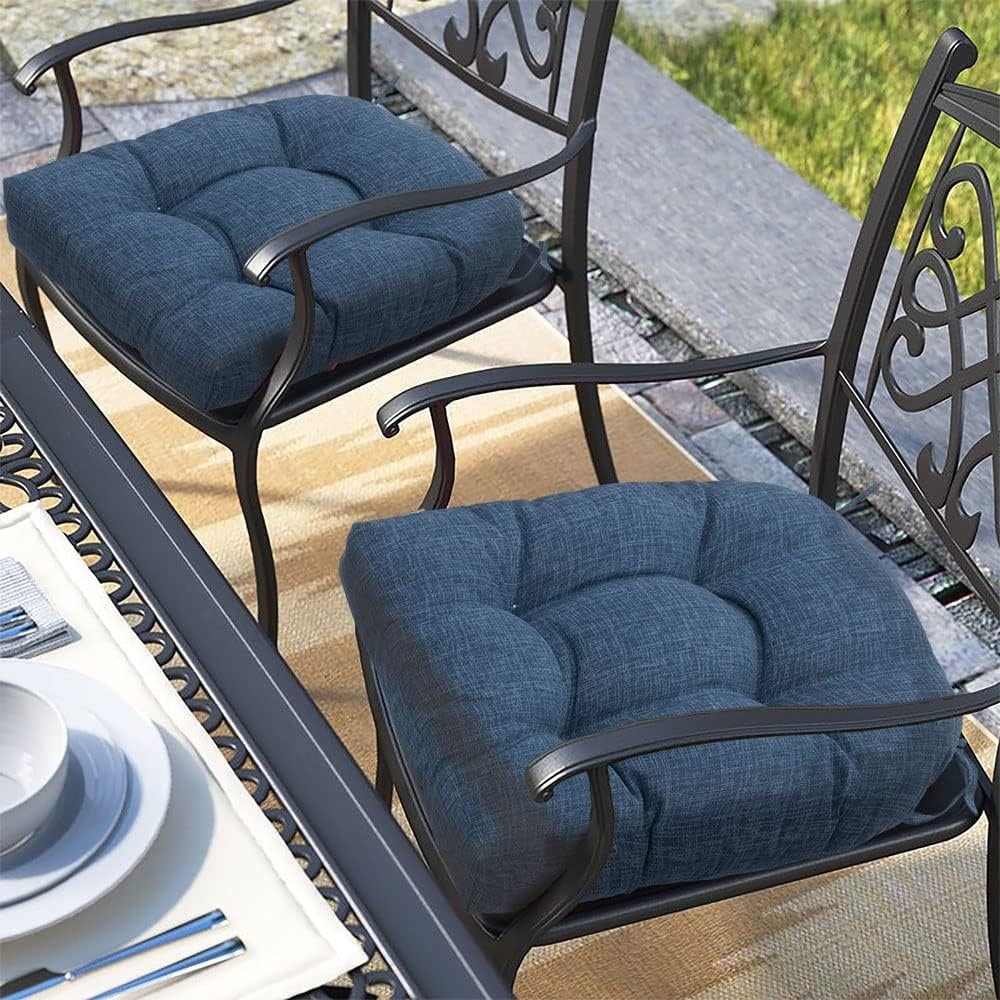 Outdoor Patio Dining Chair Cushions Set of 4, 19x18 Inches, Navy Blue, Water & UV Resistant