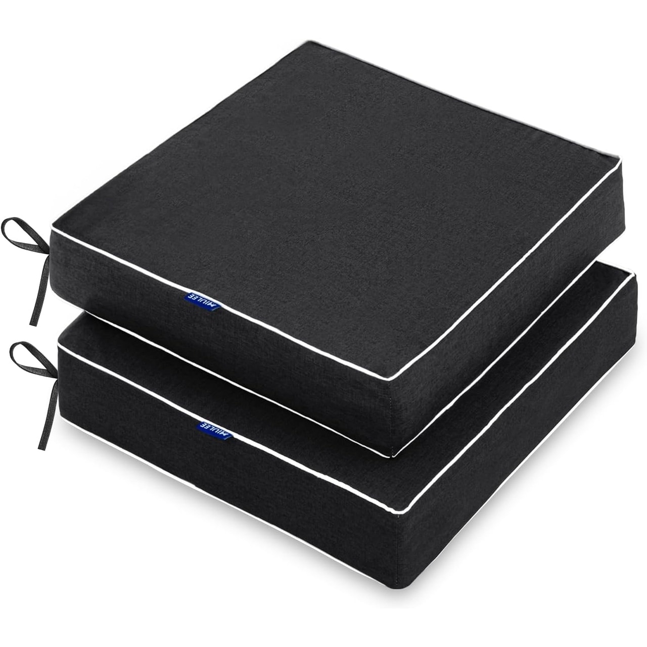 Set of 2 Waterproof Outdoor Chair Cushions with Ties, 22x22x3 Inch, Black