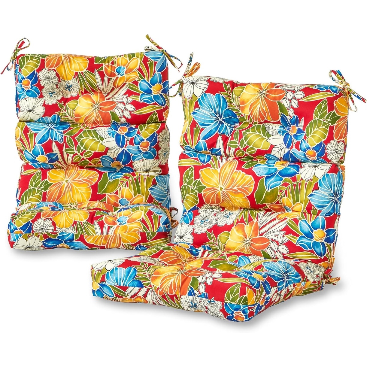 44 x 22-inch High Back Outdoor Chair Cushion with Ties, Water-Resistant Polyester, Plush Recycled Fill - Set of 1