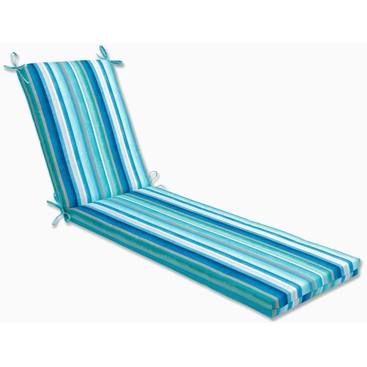 Reversible Indoor/Outdoor Chaise Lounge Cushion with Ties, Weather & Fade Resistant, 80x23x3 Inches, Blue/Tan