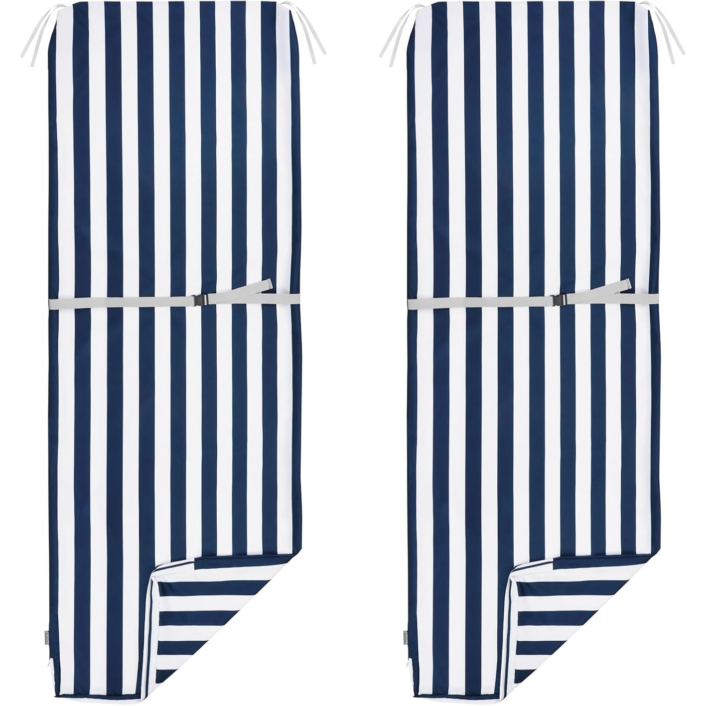 Waterproof UV Resistant Patio Lounge Chair Cushion Cover Set of 2 with Zipper & Ties, Navy Blue & White Stripes, 72x22x3 Inch