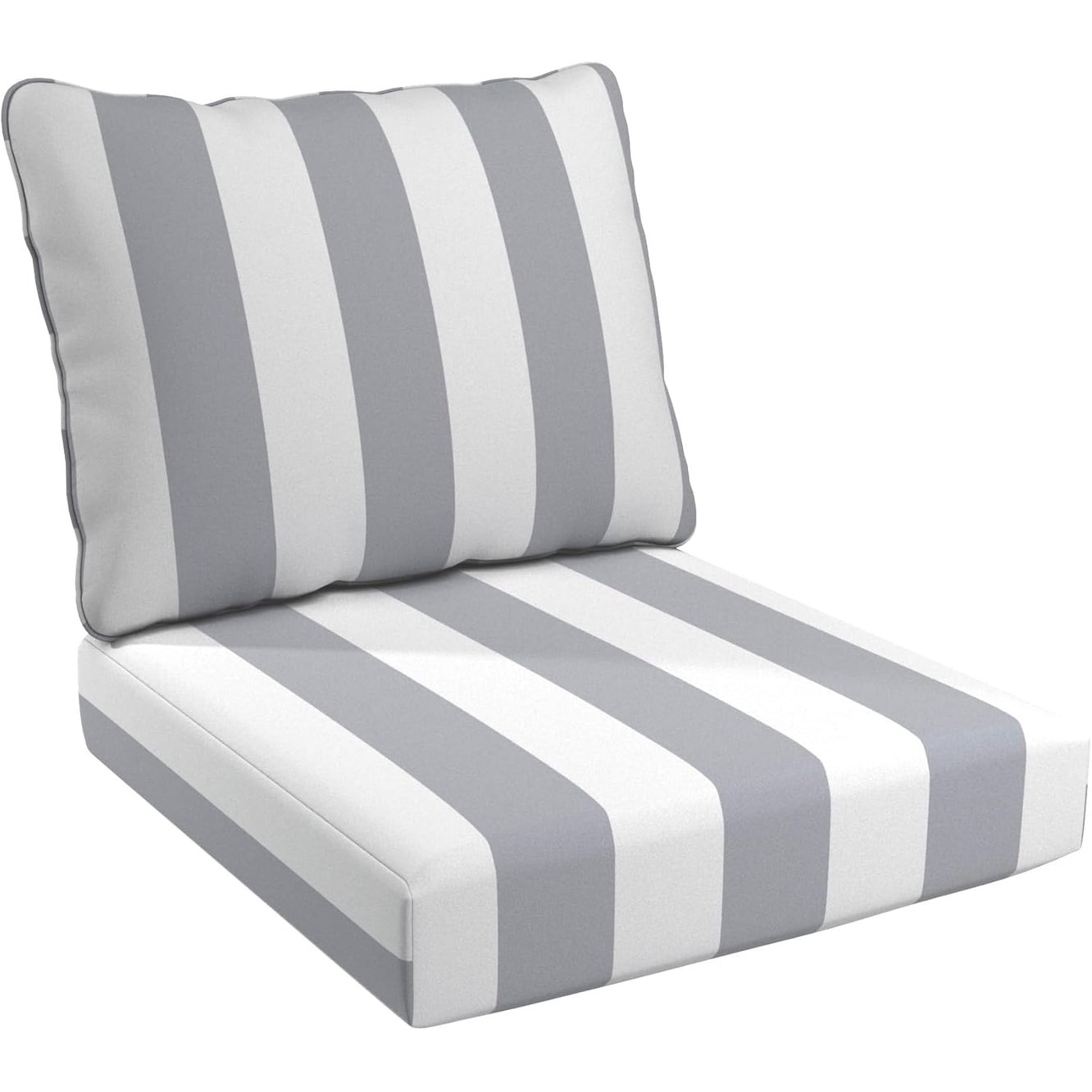 Deep Seat Cushion Set with Memory Foam, 24x24 inch, Grey/White, Includes Back Cushion