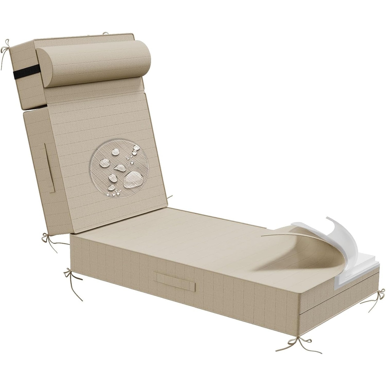 80 Inch Waterproof Fade-Resistant Outdoor Chaise Lounge Cushions with Pillow and Straps