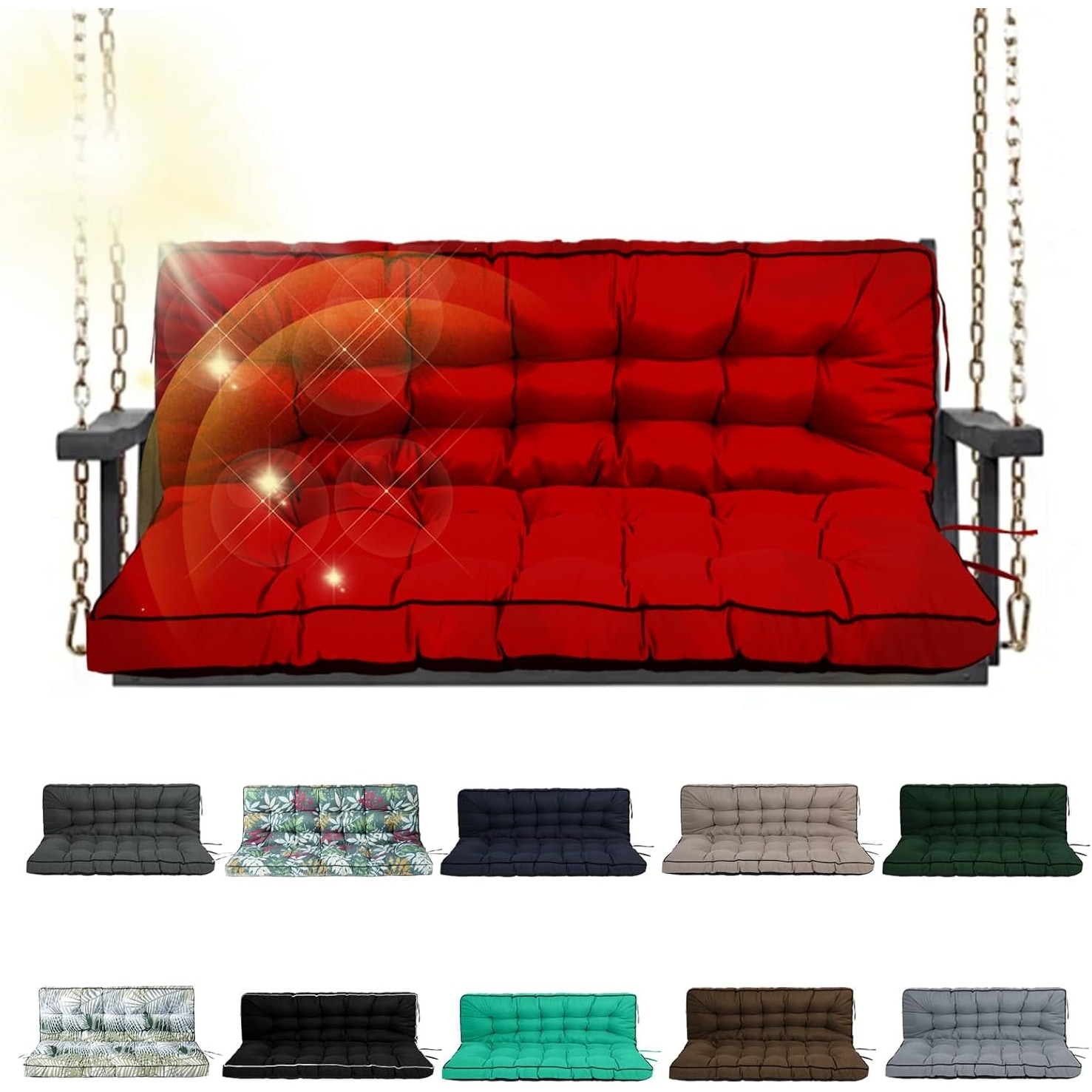 Three-Seat Waterproof Porch Swing Cushion with Backrest, 4-inch Thickened Outdoor Patio Cushions with Ties, Red, 40 x 55in