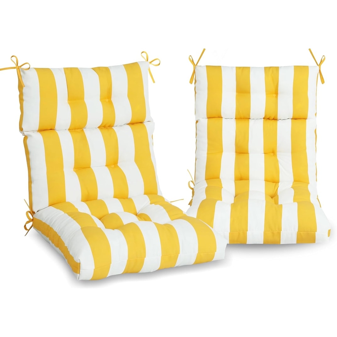 Set of 2 High Back Adirondack Chair Cushions, Waterproof and Fade-Resistant, Yellow White Stripes, 44"x22"x4"