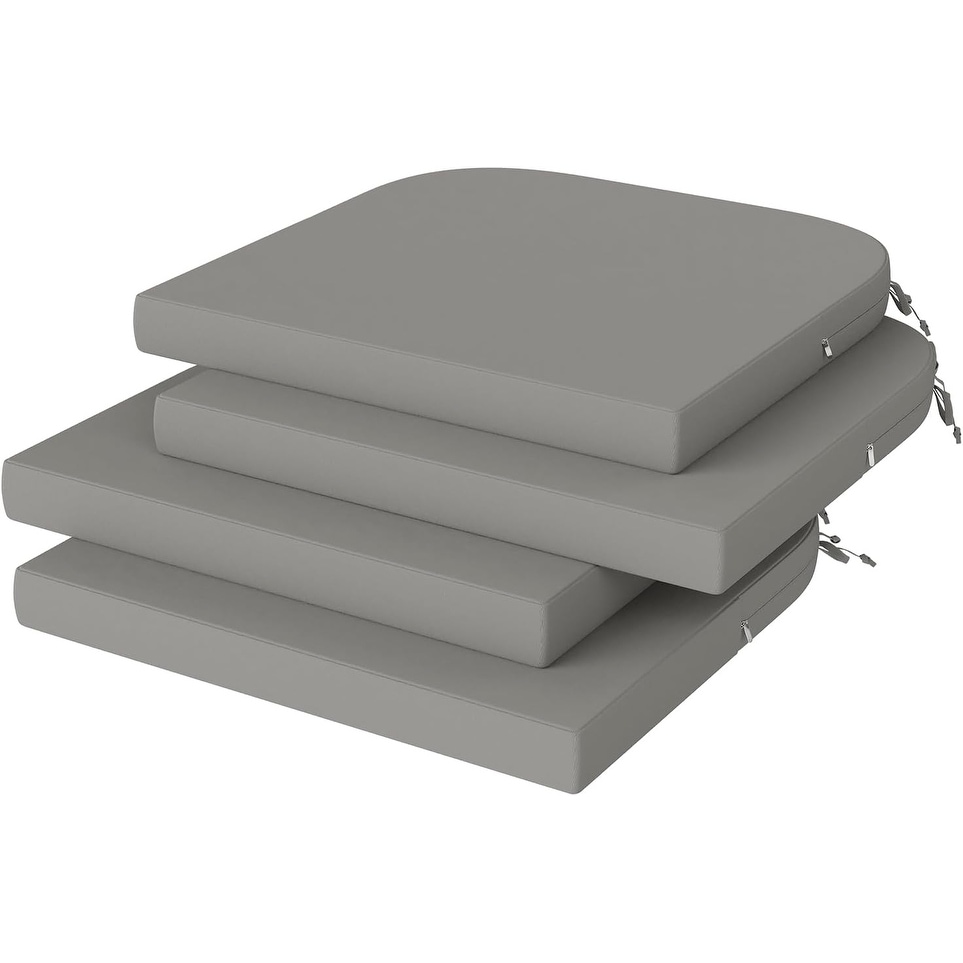 Set of 4 Waterproof Outdoor Chair Cushions with Adjustable Straps, Grey, 17x16x2 Inches