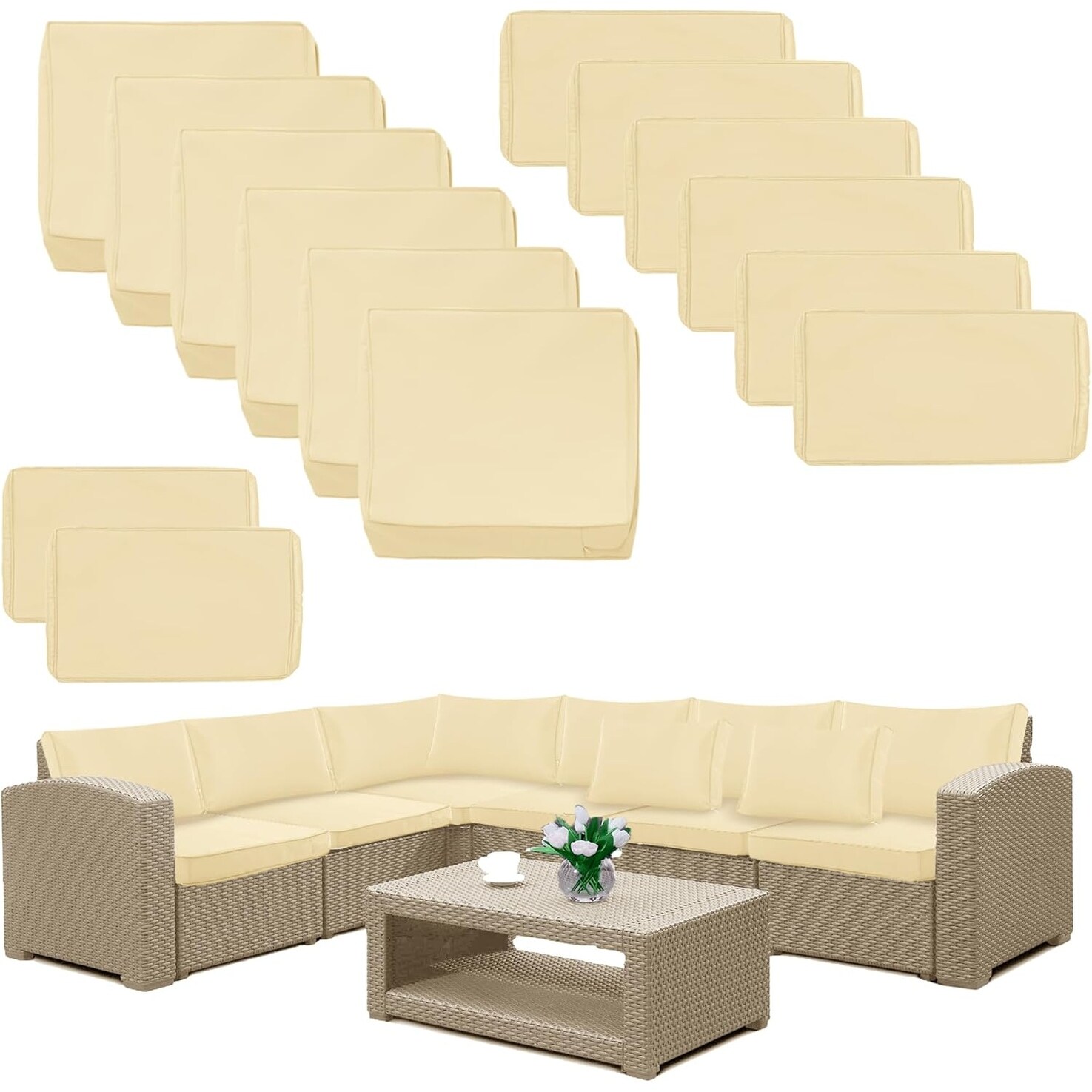 14-Piece Waterproof Outdoor Patio Cushion Cover Set for 7-Piece 6-Seater Furniture, Beige