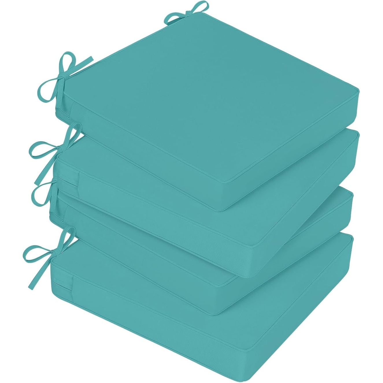 Waterproof Outdoor Chair Cushions Set of 4 with Ties and Handle, 19x19 Inch, Teal