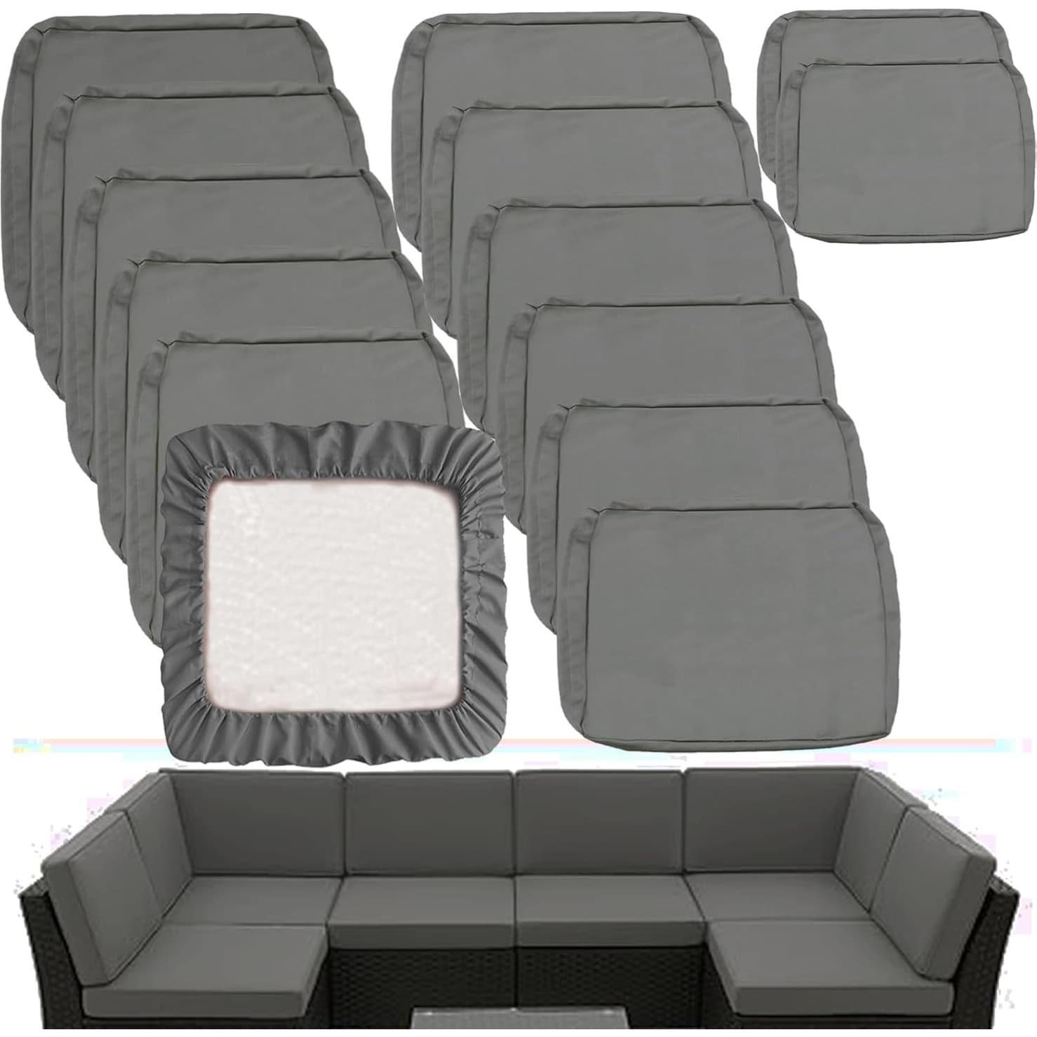14Pcs Waterproof Outdoor Cushion Covers for 6-Seaters Sofa, Grey