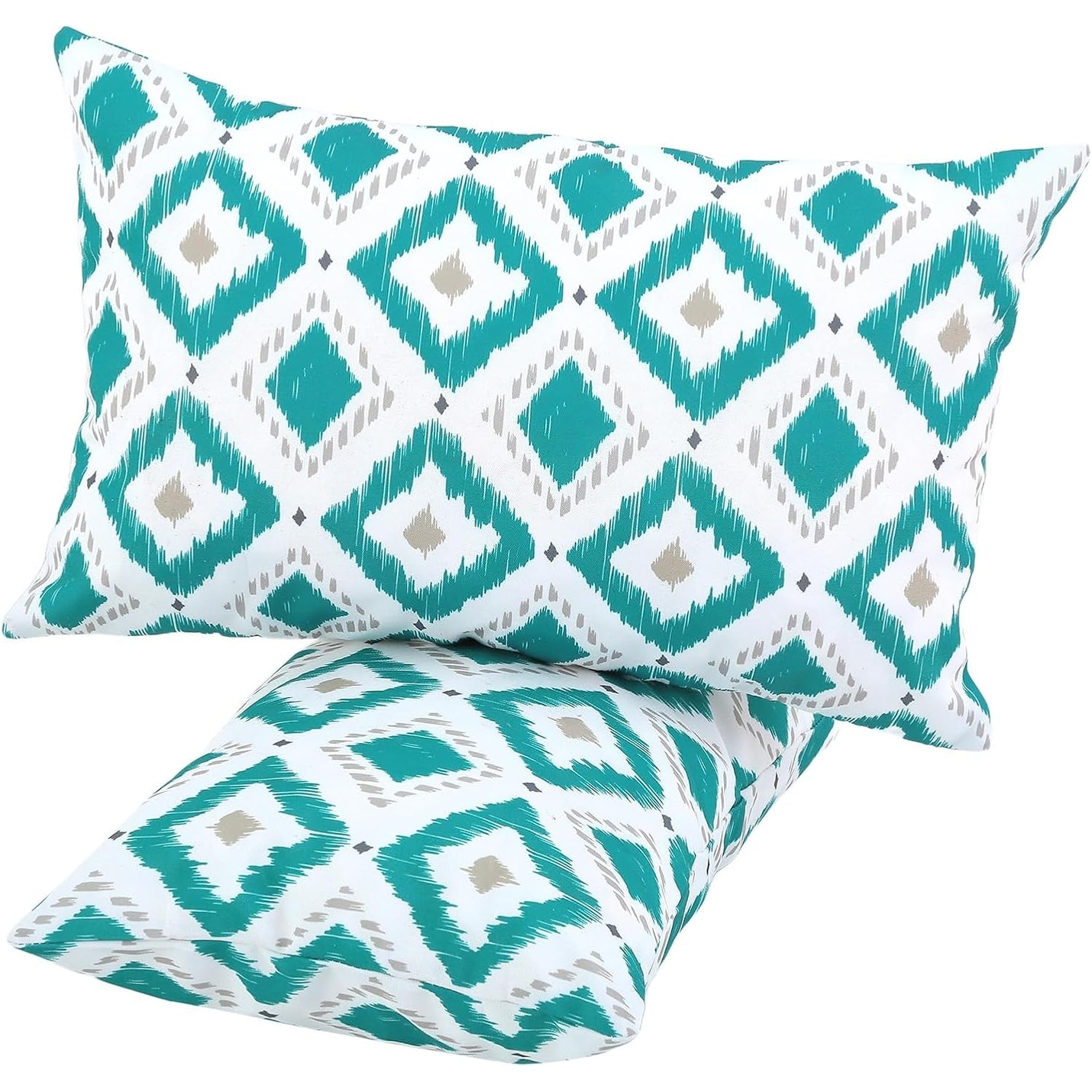 Waterproof Outdoor Lumbar Pillows Set of 2, 12 x 20 Inch, Shredded Foam Filled, Hidden Zipper, for Patio, Garden, Beach