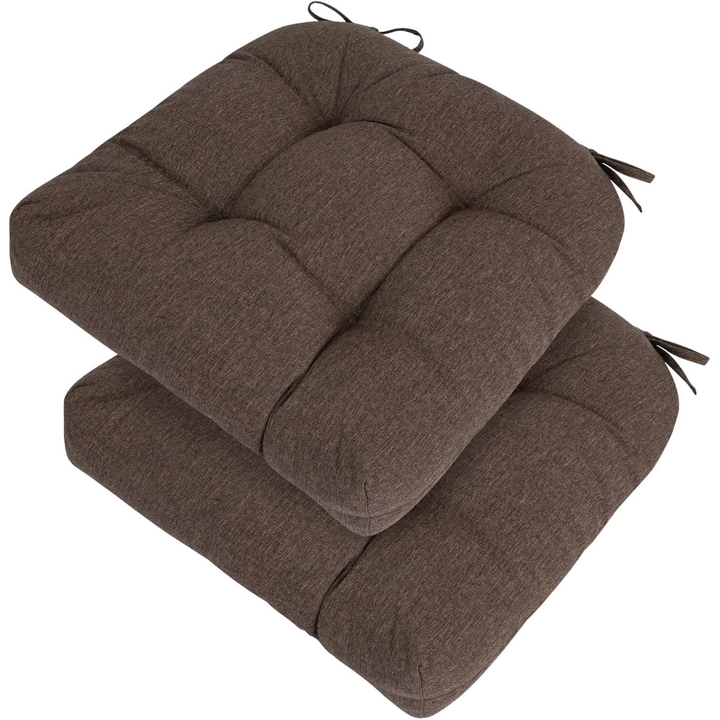 Water-Repellent Tufted Seat Cushions Set of 2 for Outdoor Chairs, 19x19x5 Inch, Brown