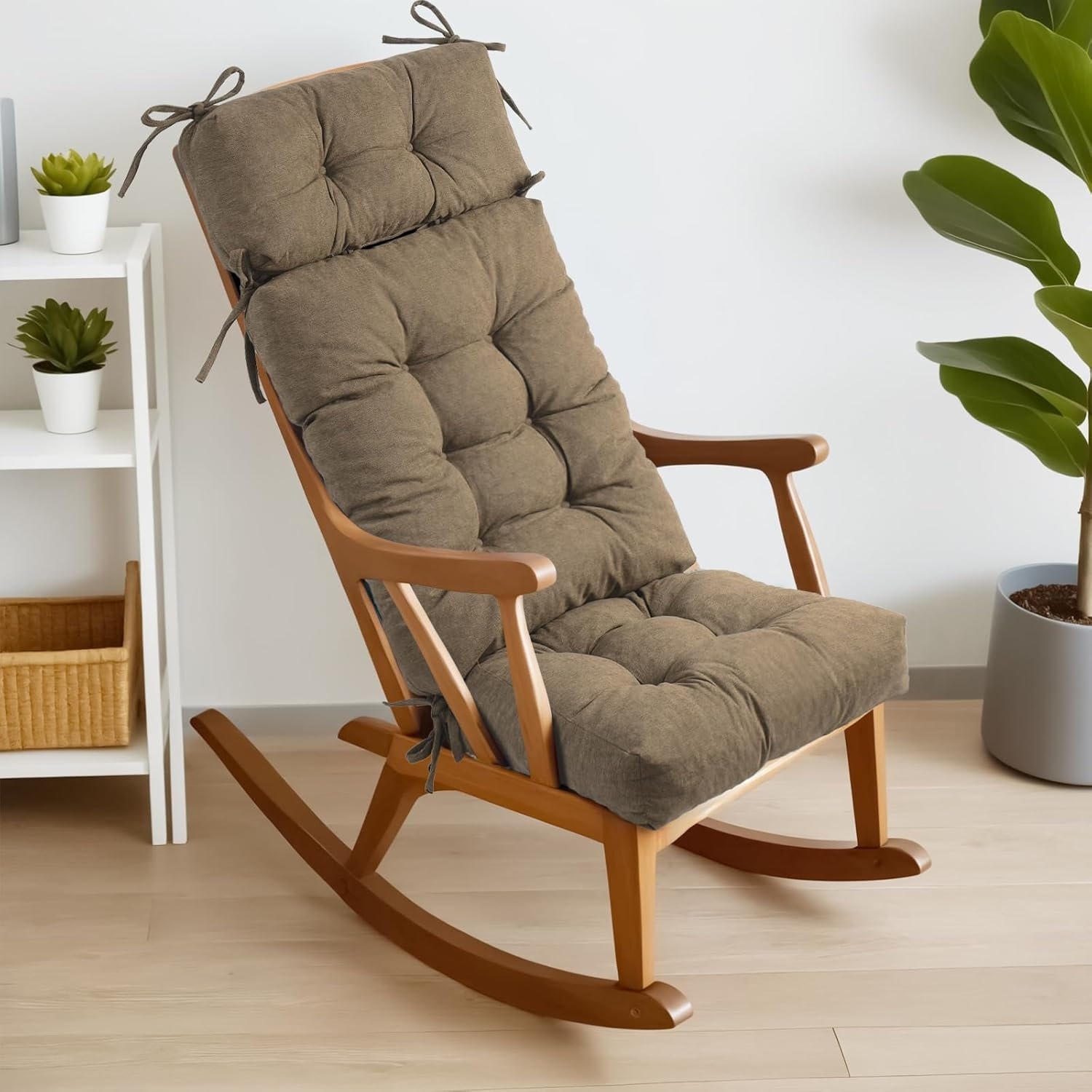 Comfortable Non-Slip Rocking Chair Cushion Set with Adjustable Straps, Earth Brown, 52x19x4 Inches