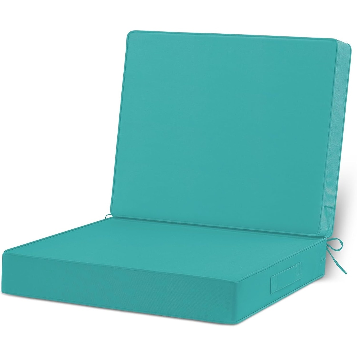 24x24 Waterproof Outdoor Cushions with Non-Slip Ties, Removable Washable Cover, Teal