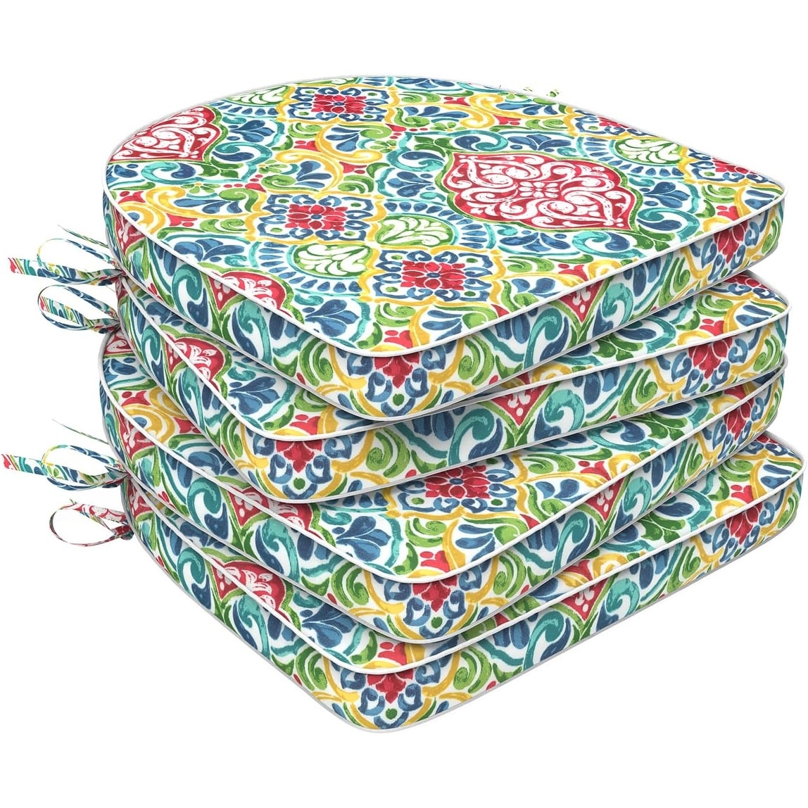 Reversible 18-inch Square Outdoor Seat Cushion with Ties, 4-Pack, Water & Fade Resistant