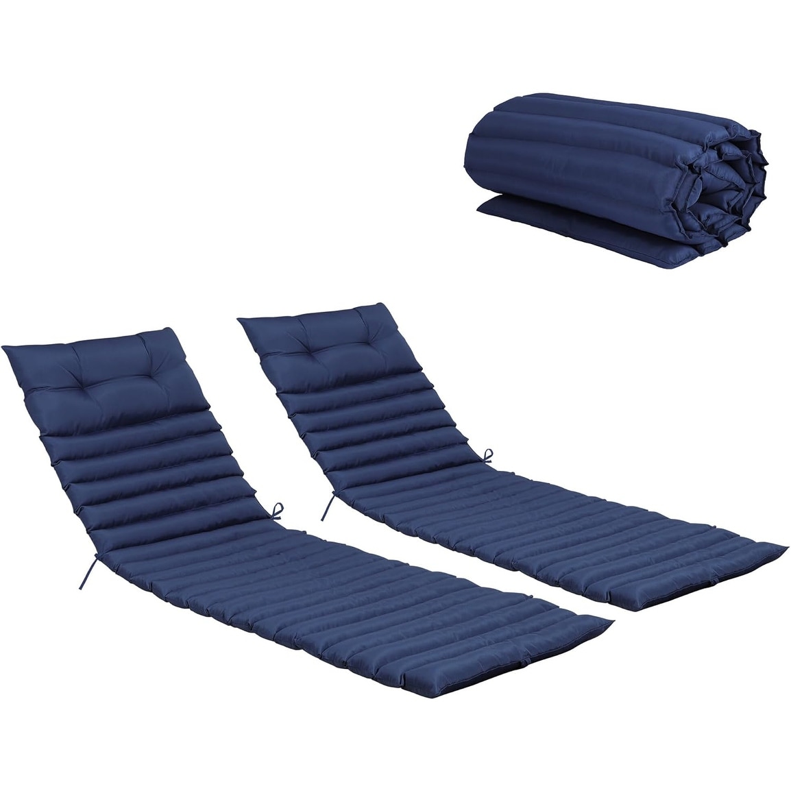 Waterproof Outdoor Chaise Lounge Cushion Set of 2 with Headrest, Navy Blue, 73 inch