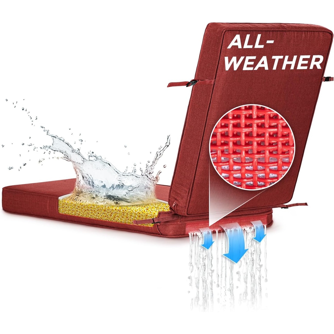 All-Weather Water-Resistant Outdoor Patio Lounge Chair Cushion with Adjustable Buckle Ties, 73x22 Inch, Burgundy