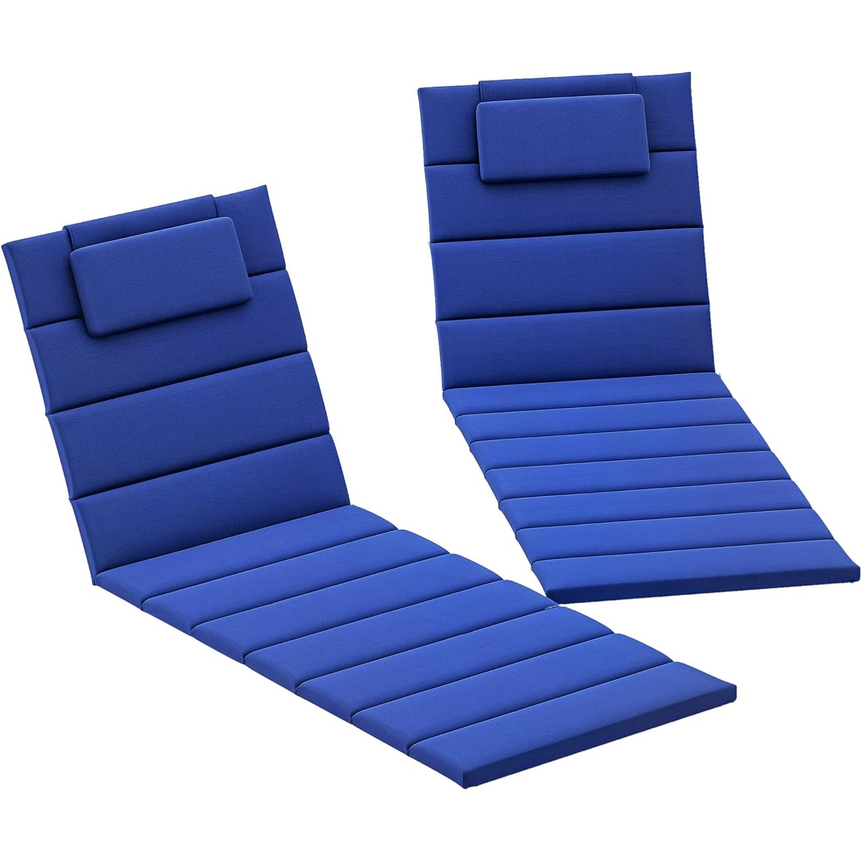 Outdoor Lounge Chair Cushion Set of 2, 80x26 Inch, UPF50+, Foldable, Dark Blue