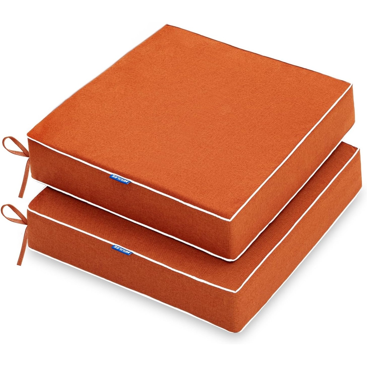 24 x 24 x 4 Inch Waterproof Outdoor Chair Cushions with Ties, Set of 2, Orange