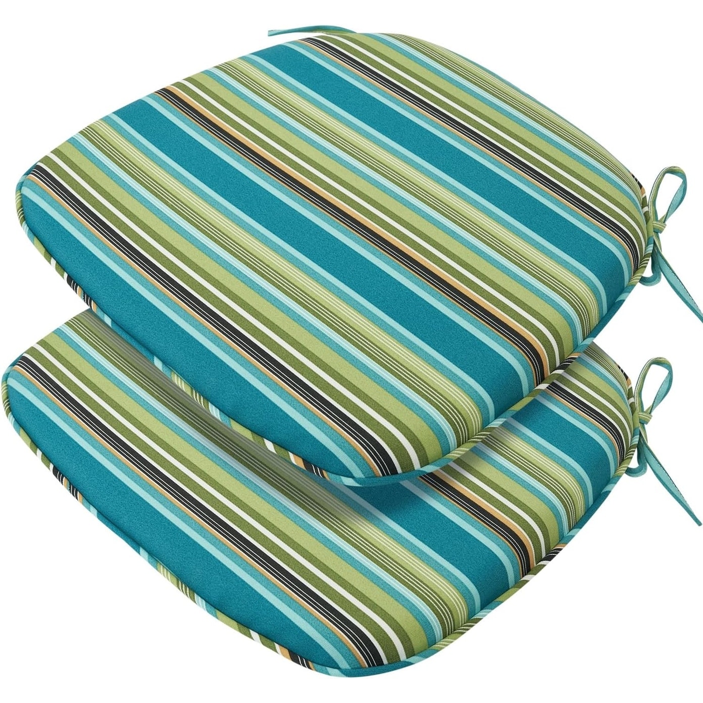 Set of 2 U-Shaped Water-Resistant Outdoor Chair Cushions, 17x16 Inch, Green Stripe