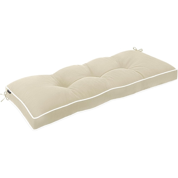 42 x 16 Inch Water-Resistant Outdoor Bench Cushion with Ties, Beige