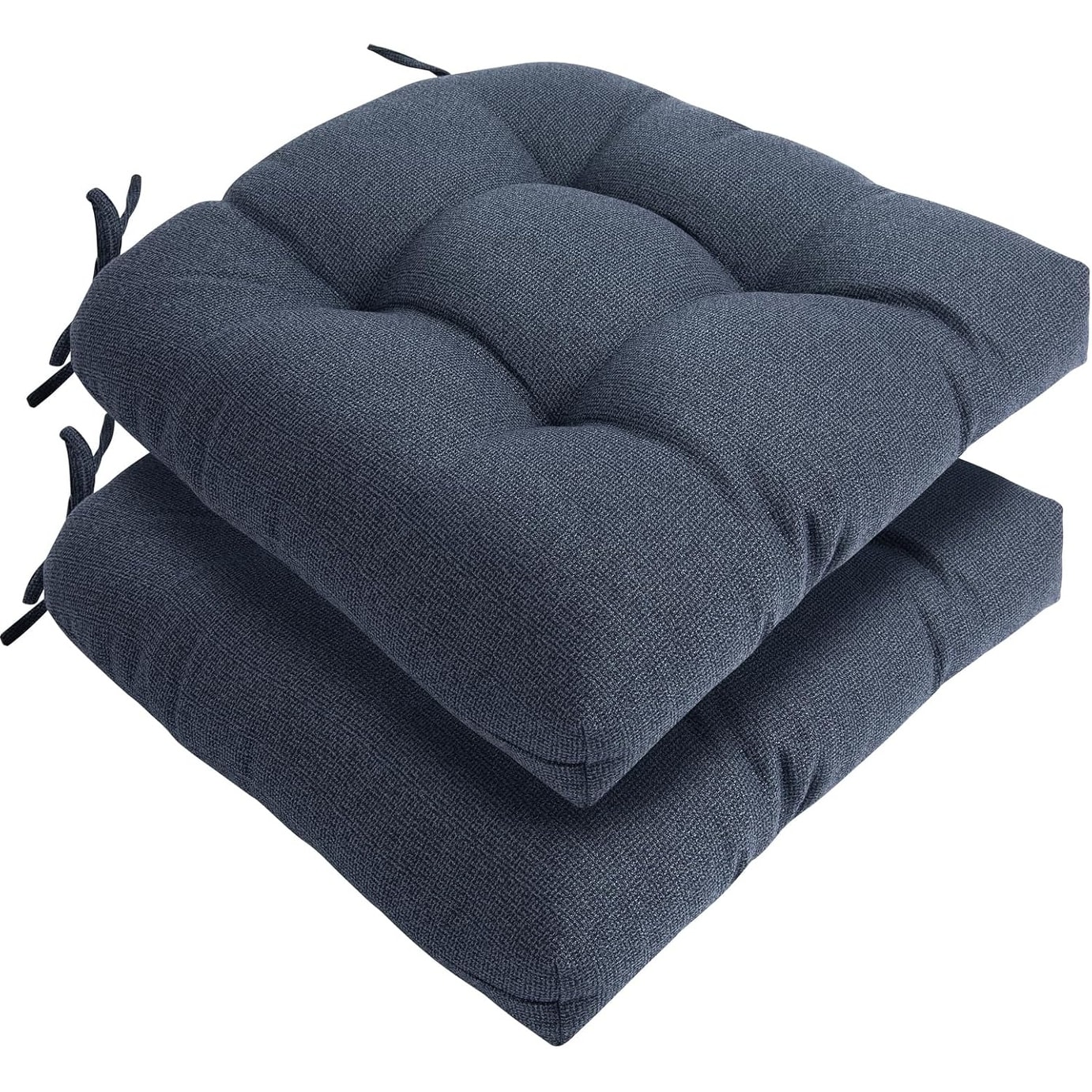 Set of 2 Waterproof Tufted Chair Cushions with Ties, 19x19 Inch, Navy Blue