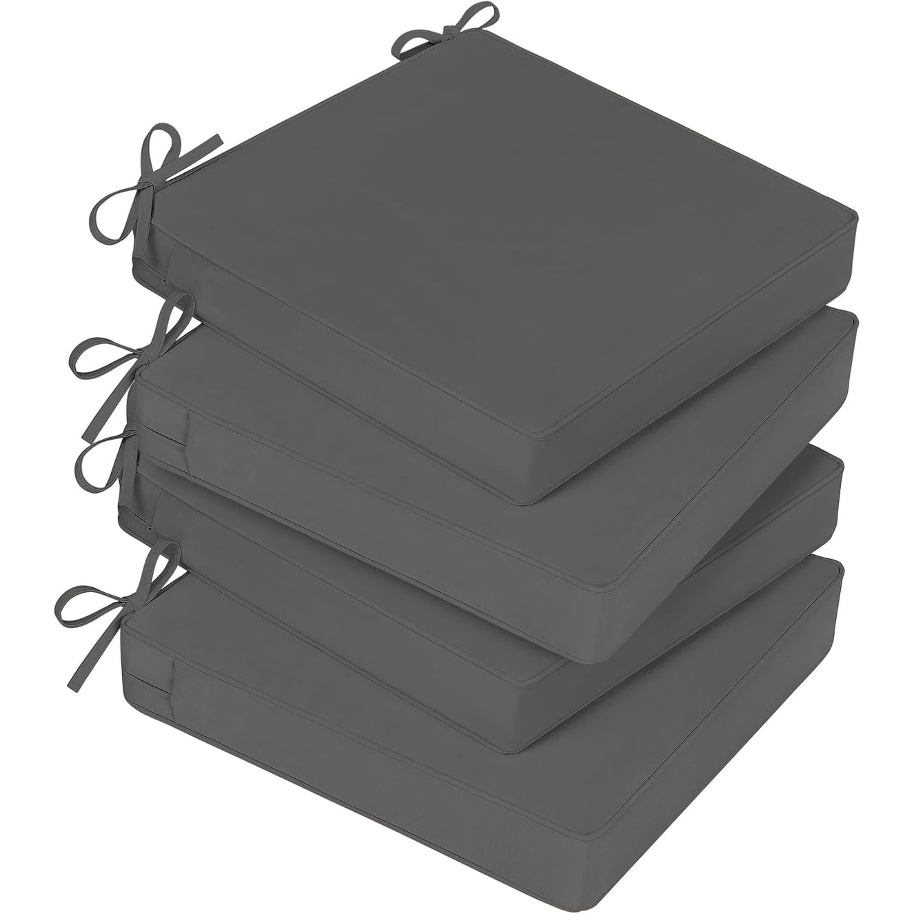 Waterproof Outdoor Chair Cushions Set of 4, 18 x 18, with Ties and Handle, Dark Grey