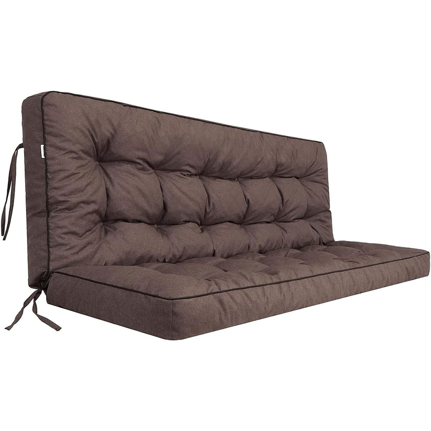 Waterproof Outdoor Swing Cushion with Backrest, Thickened 2/3 Seater Replacement, Brown, 55x40 Inch