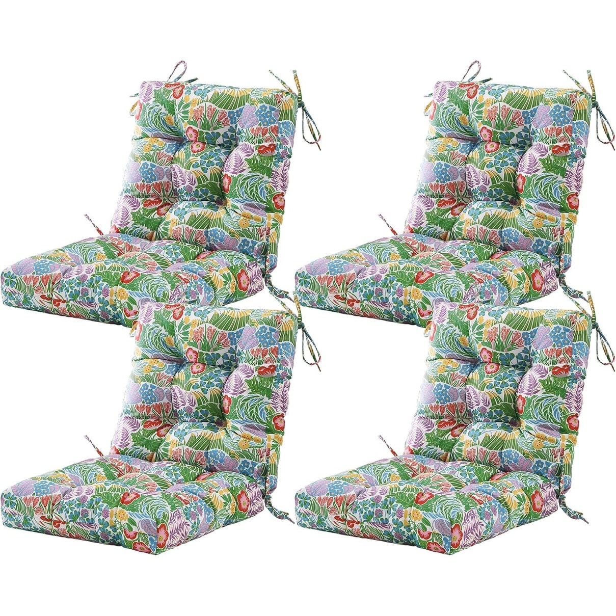 Set of 4 Outdoor Patio Chair Cushions with Ties, Tufted Replacement, 40x20x4 Inches, Floral Design, Water Repellent, UV Treated