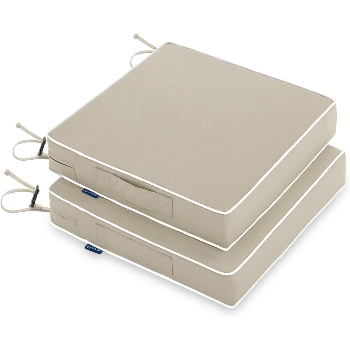 Set of 2 Waterproof Outdoor Chair Cushions with Adjustable Straps, 22x22x3 Inches, Beige