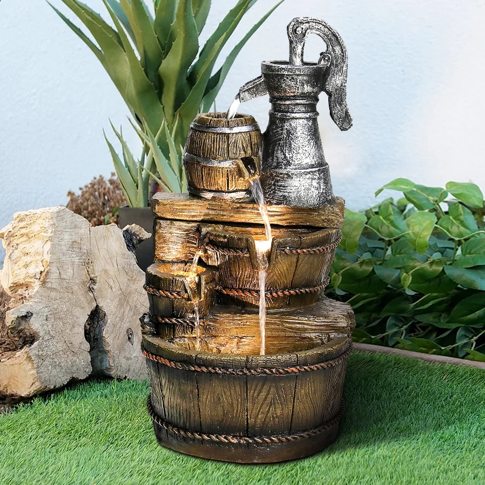 Outdoor Rustic 5 Tier Barrel Water Fountain with Pump for Home