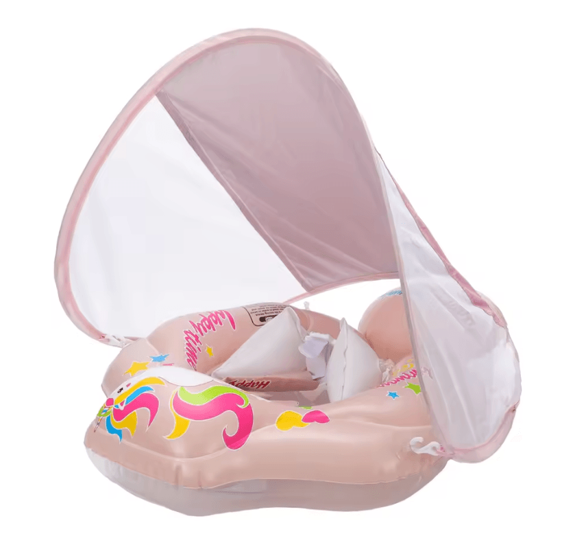 Rooxin Baby Pool Float With Canopy Secure & Comfy Swim Ring For Toddlers 24.5in Blue