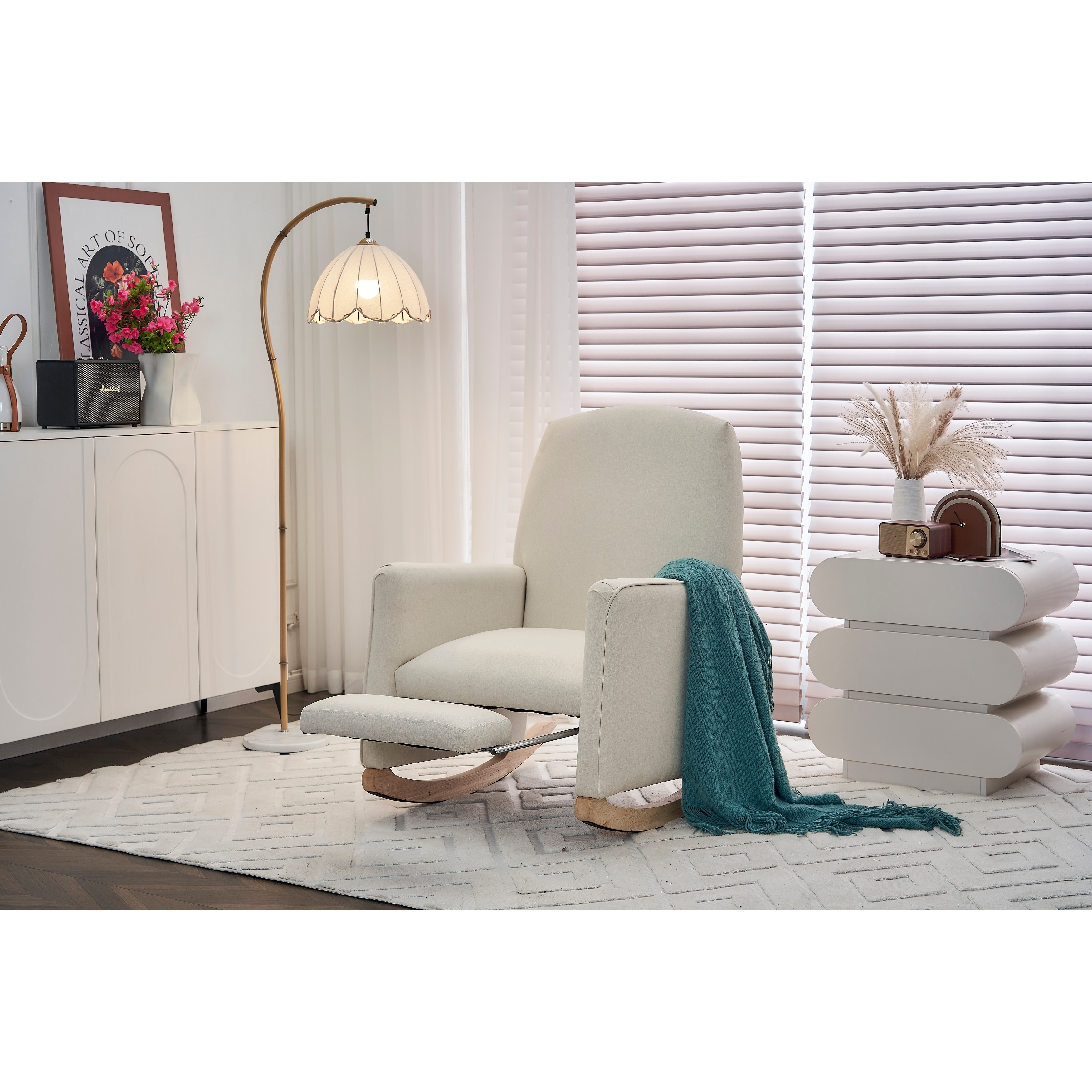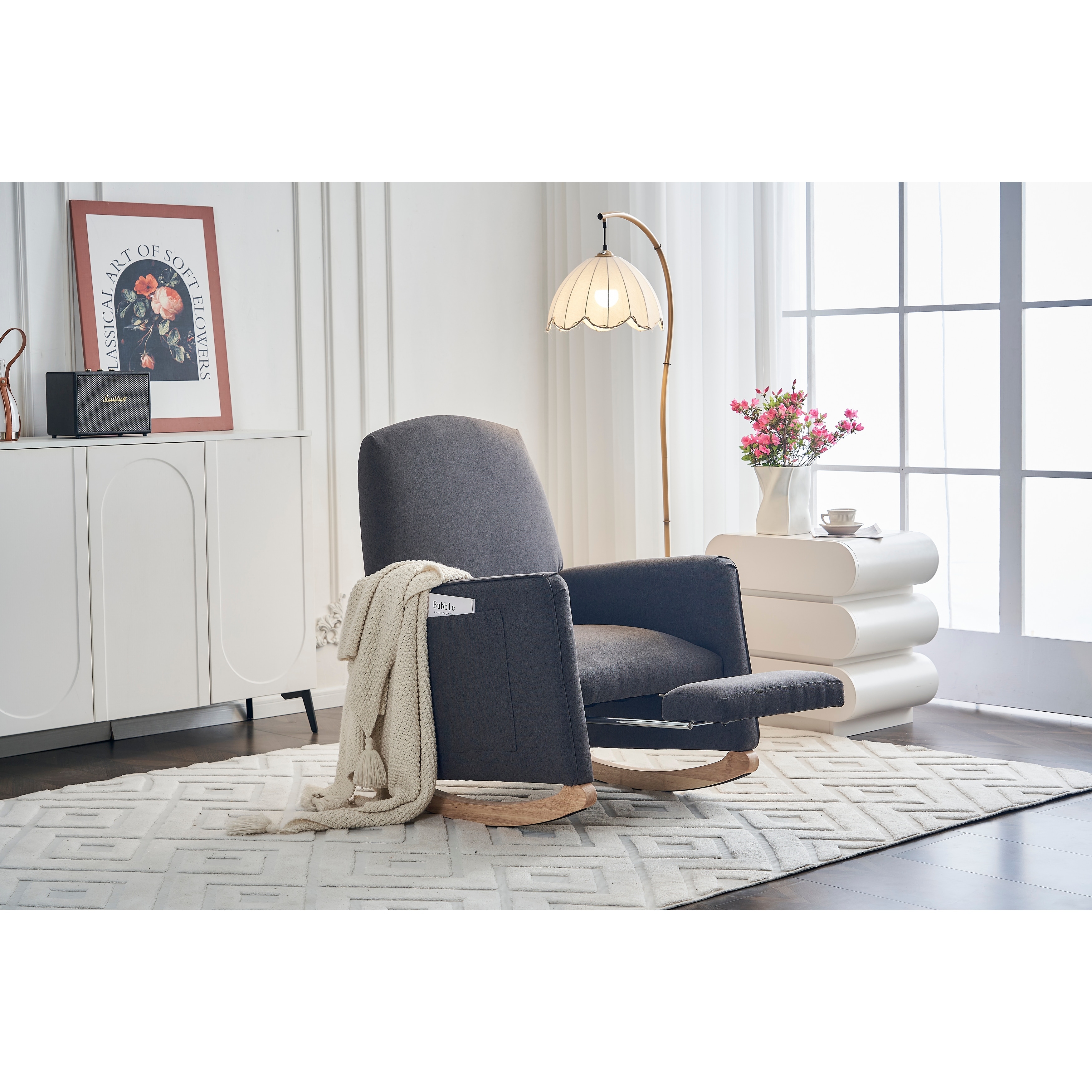 Cotton Linen Fabric Nursery Rocking Chair With Adjustable Footrest For Home