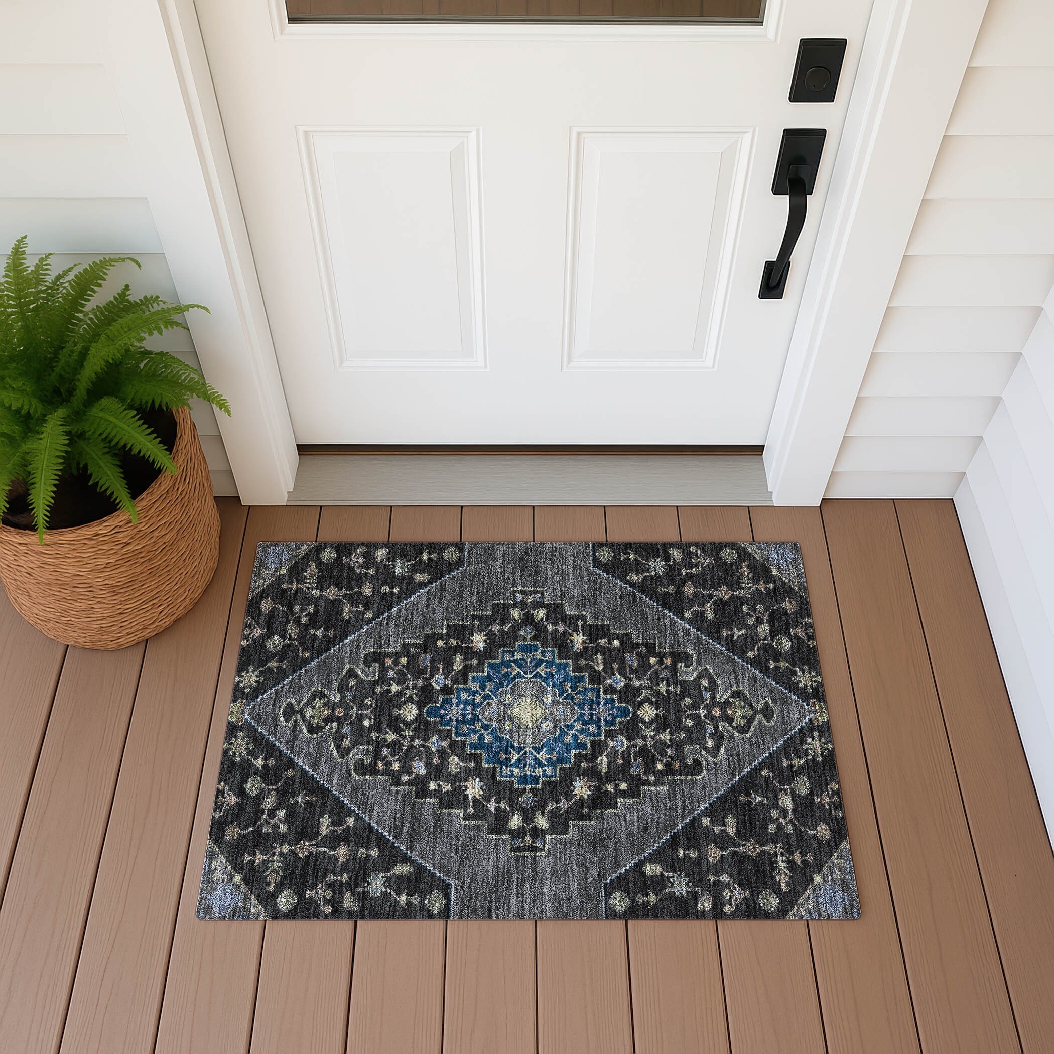 Machine Washable Indoor/ Outdoor Modern Diamonds Chantille Rug