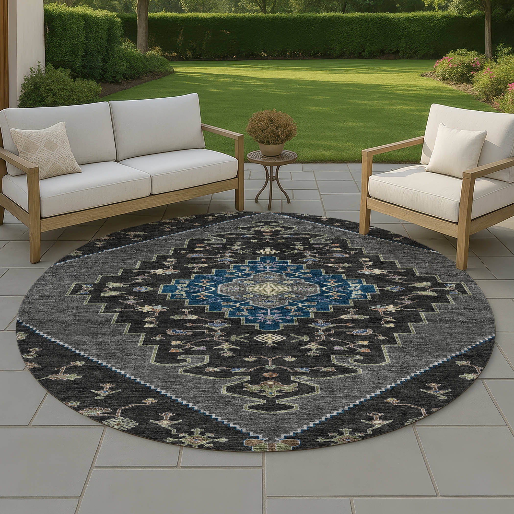 SAFAVIEH Courtyard Fran Mandala Indoor/ Outdoor Waterproof Patio Backyard Rug