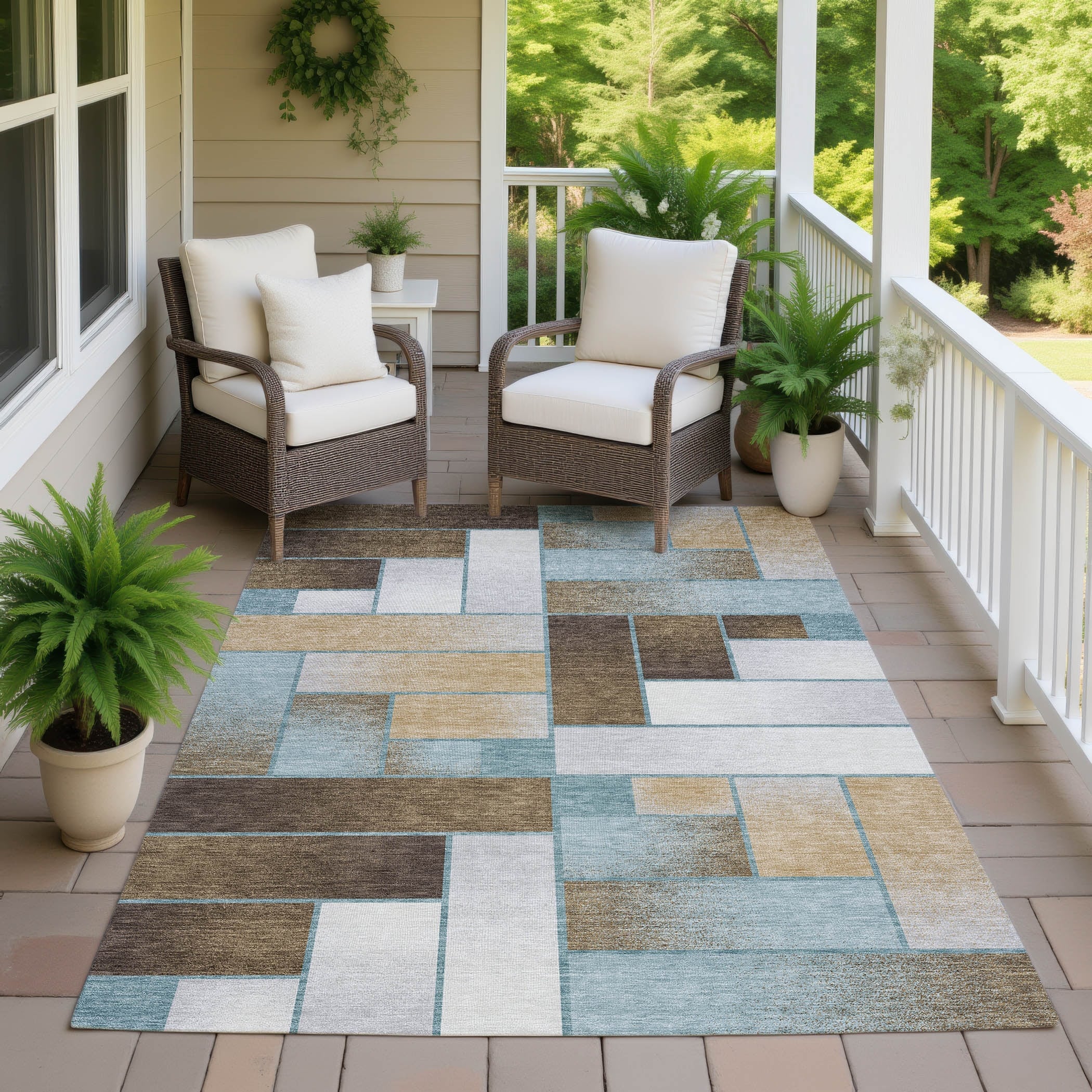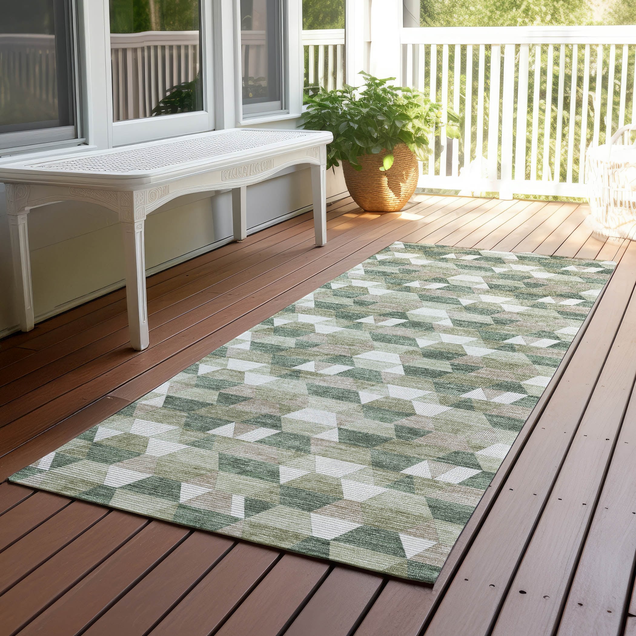 Machine Washable Indoor/ Outdoor Geo Kingman Chantille Rug