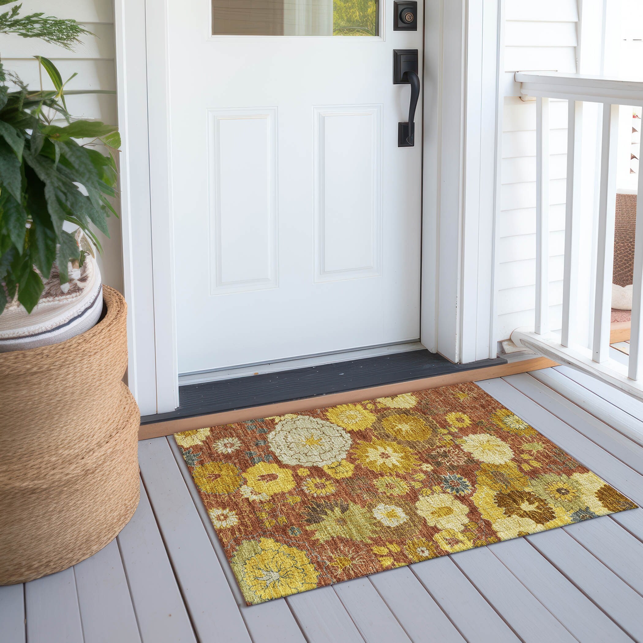 Machine Washable Indoor/Outdoor Modern Floral Chantille Rug