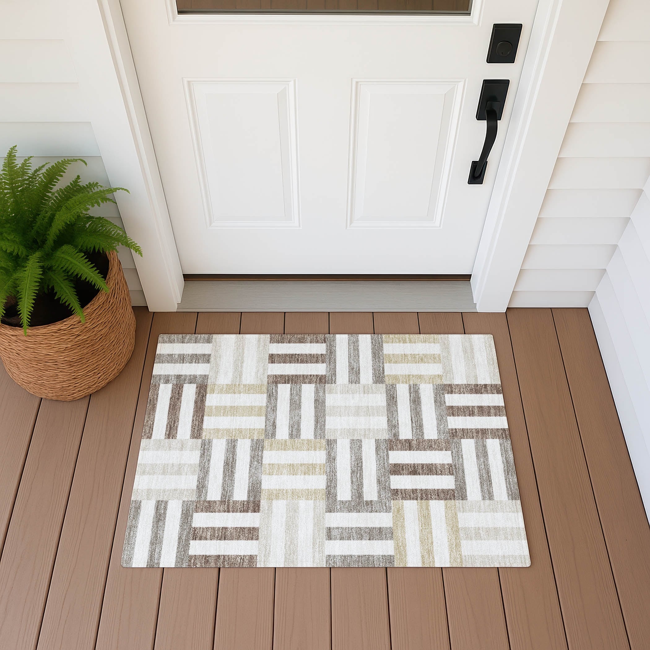 Machine Washable Indoor/ Outdoor Modern Hatch Chantille Rug