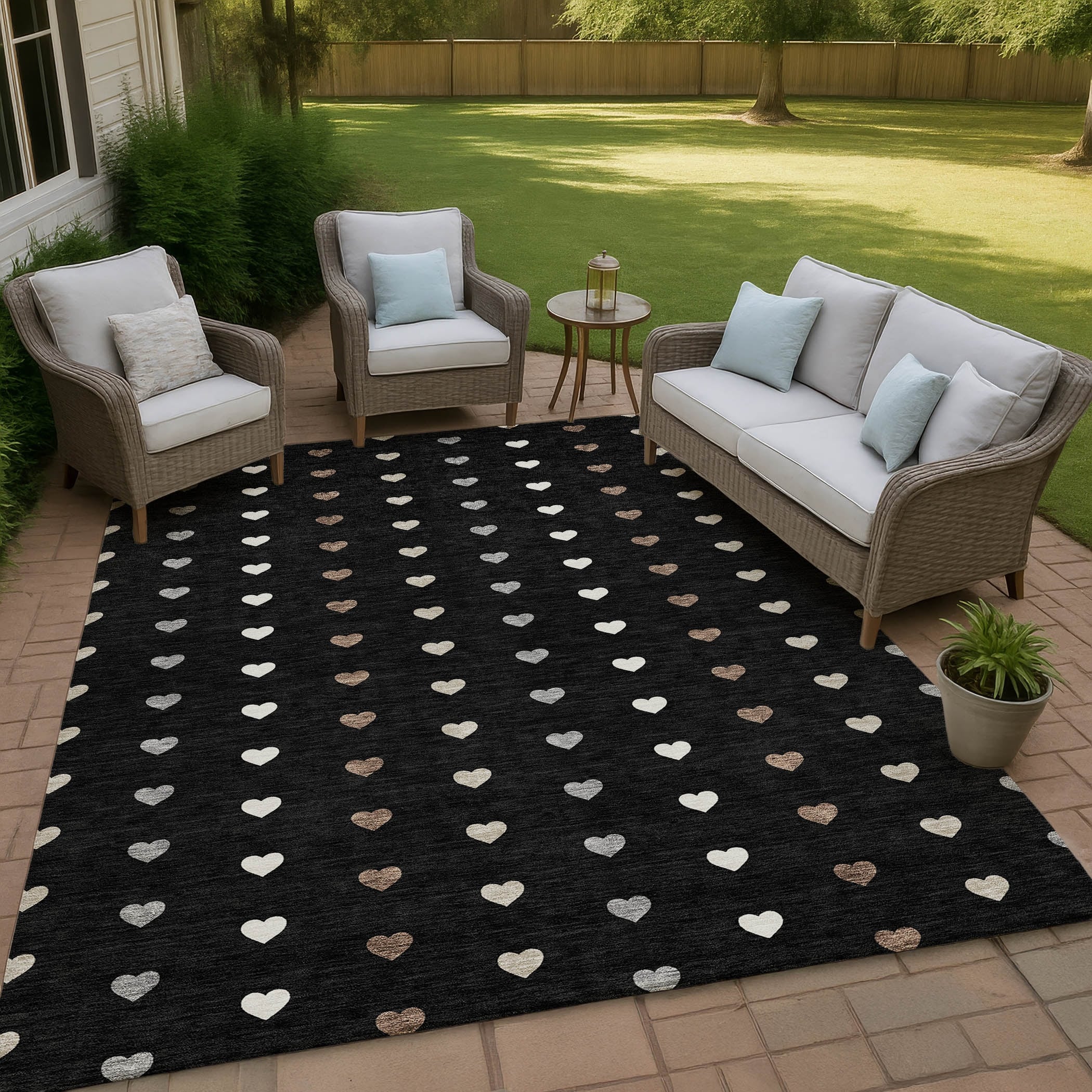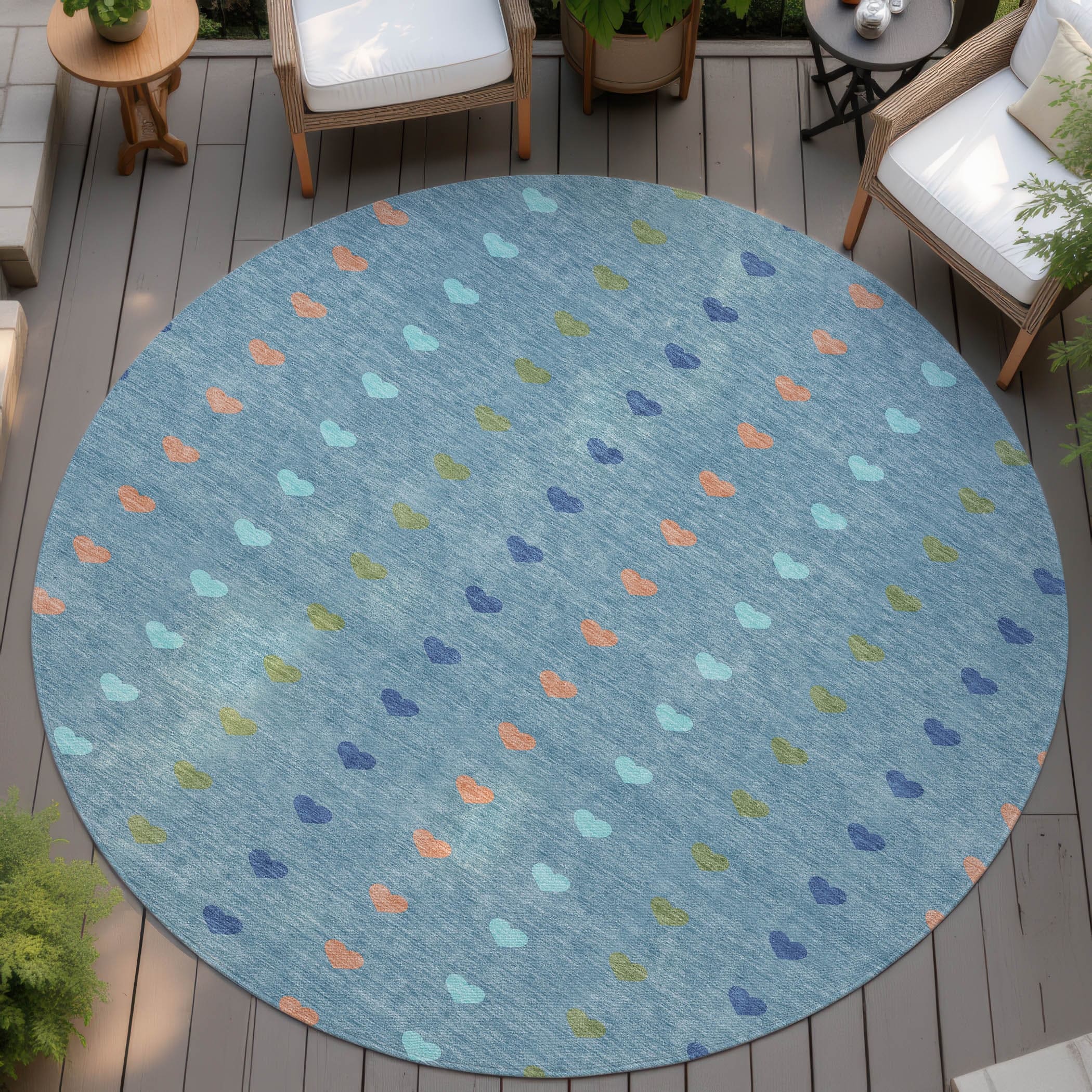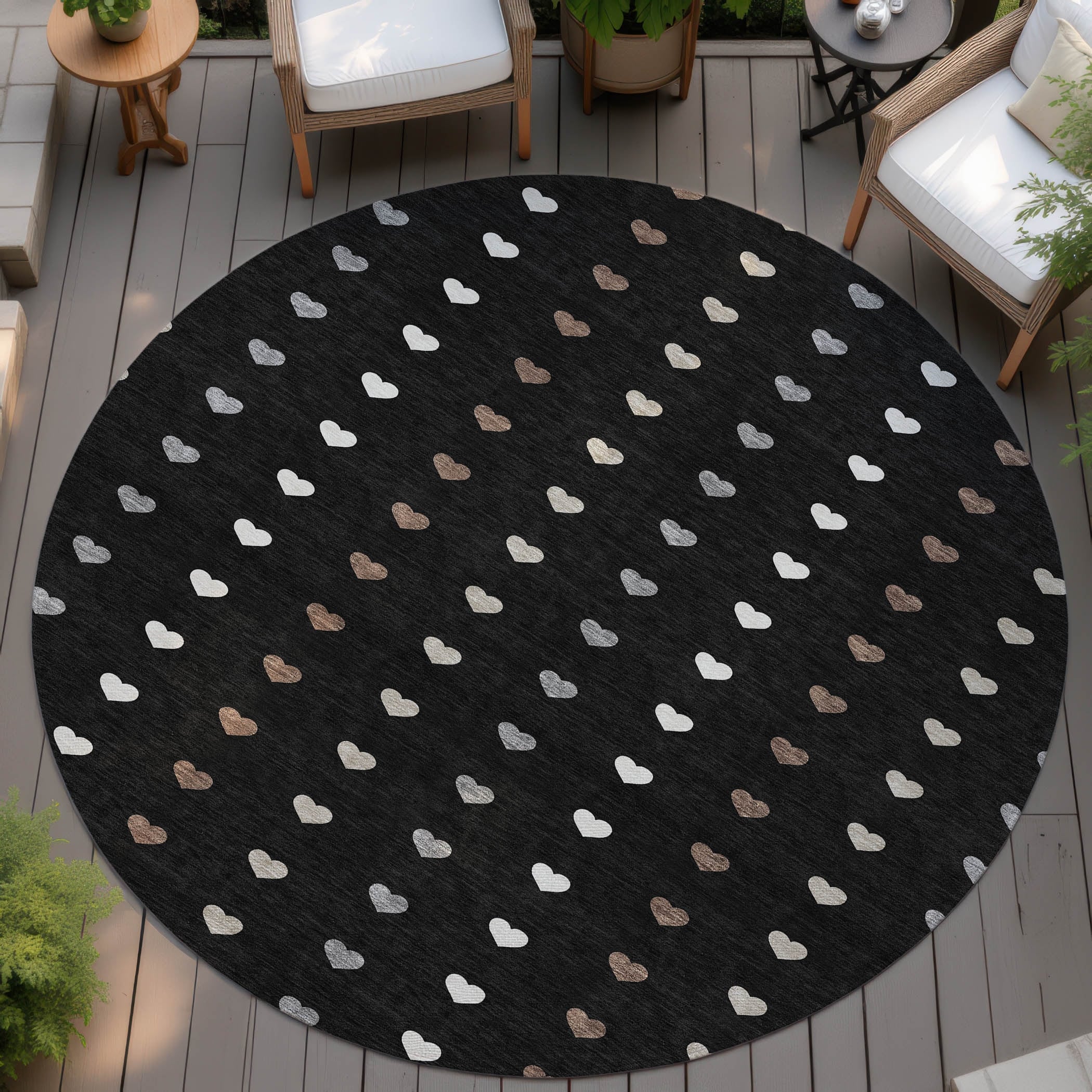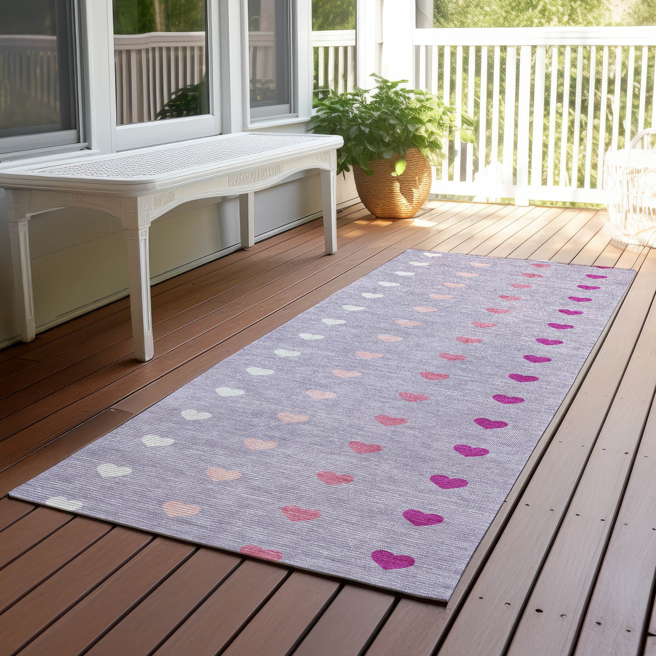 Machine Washable Indoor/ Outdoor Modern Hearts Chantille Rug