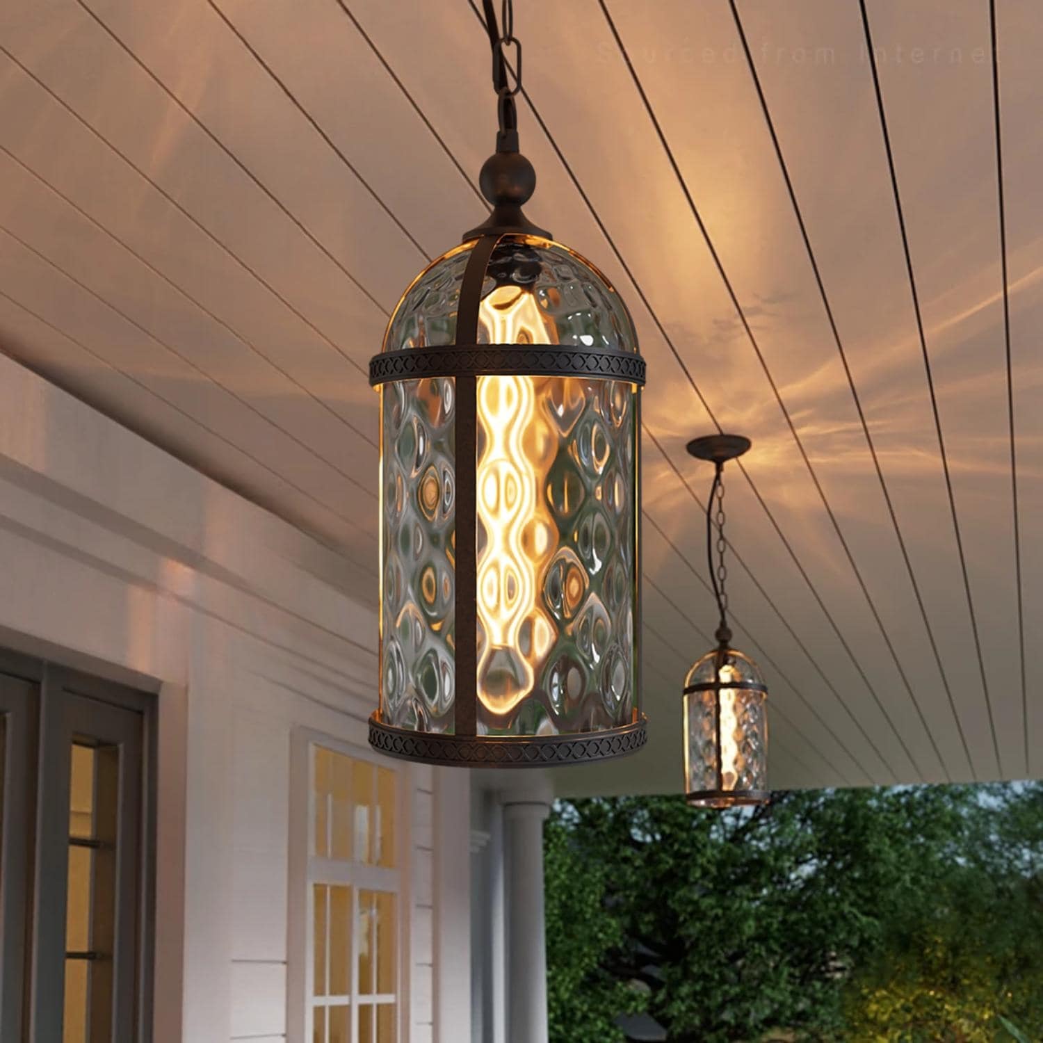 Outdoor Glass Pendant Light, 18 Inch Exterior Hanging Lantern, Black - 2 Pack